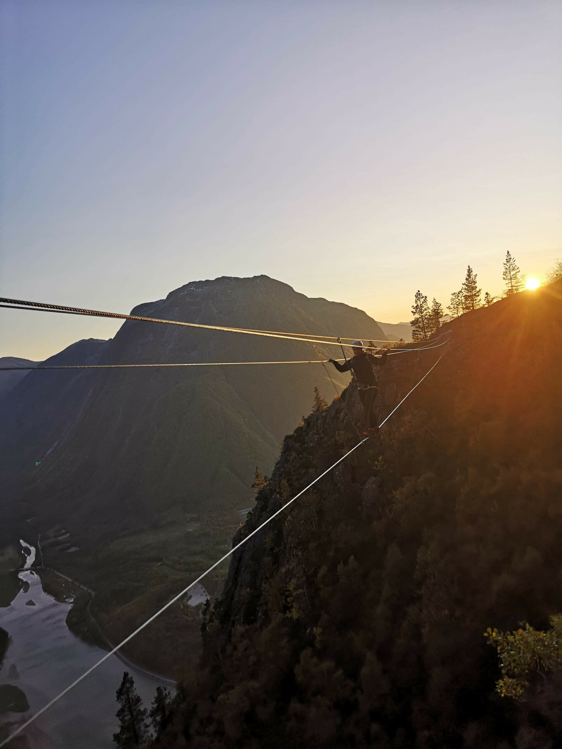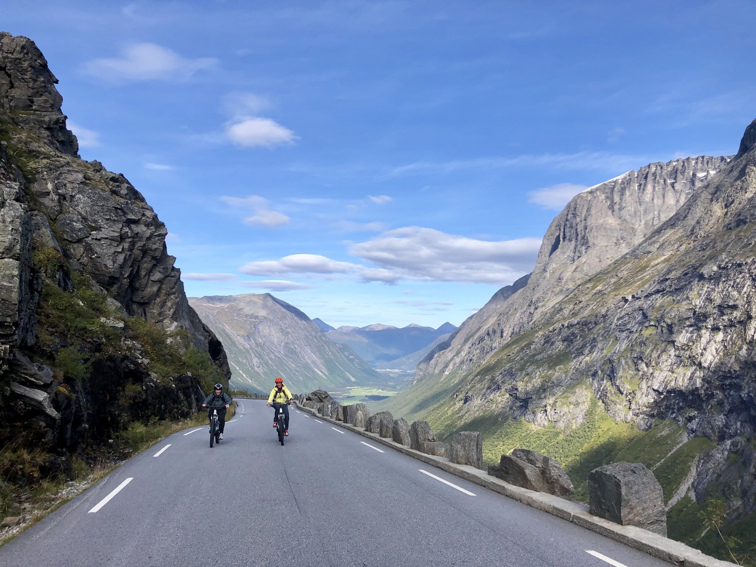 Machen Sie einen Ausflug auf den Littlefjellet, direkt neben Romsdalshorn, und genießen Sie einen fantastischen Blick hinunter auf den Campingplatz Trollveggen und die wilden Berge von Romsdalen